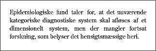 De epidemiologiske fund taler for, at det nuværende kategoriske diagnostiske system afløses af et dimensionelt system, men der mangler fortsat forskning, som belyser det hensigtsmæssige heri.