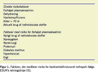 I dette studie inkluderer faktorer med risiko for kontraststofinduceret nefropati både direkte risikofaktorer og faktorer, der giver risiko for forhøjet P-kreatinin [5], Figur 1.