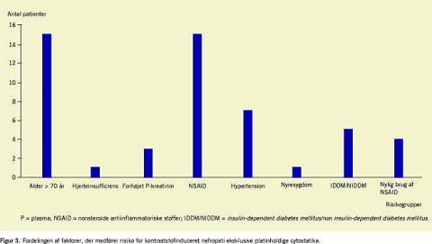 Materiale og metoder: Retrospektivt studie af lungecancerpatienter på Hillerød Hospital. Inklusionskriterier: Patienter, der var i aktuelt behandlingsforløb med platinholdige cytostatika til og med 20. september 2006, som havde fået foretaget elektiv computertomografi (CT) med injektion af intravenøst iodholdigt kontraststof. I alt indgik 51 patienter. P-kreatinin samt faktorer med risiko for udvikling af kontraststofinduceret nefropati blev registreret.