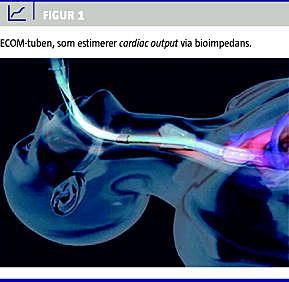 Intensivafdelinger har brug for simple screeningsværktøjer for at kunne identificere kritisk syge patienter med lavt CO og optimere behandlingen af dem. I Danmark klassificeres intensivafsnit/intensivafdelinger i niveauerne 1, 2 og 3, hvor niveau 3 betegner det mest specialiserede niveau, og niveau 1 er det mindst specialiserede niveau. Denne artikel udgår fra Holbæk Sygehus, Intensivafdeling, som er en niveau 2-afdeling, hvor Sundhedsstyrelsen formelt kræver, at der gennem hele døgnet er mulighed for kardiologisk vurdering, herunder ekkokardiografi, på specialistniveau [7]. Dette var der imidlertid ikke mulighed for i 2010, da nærværende undersøgelse blev påbegyndt, hvorfor vi måtte finde et alternativ til monitorering af kritisk syge patienters kredsløb og respons på behandlingsinterventioner. Pulse contour cardiac output (PiCCO)-systemet var blevet brugt på afdelingen i nogle år, men kun få læger og sygeplejersker havde rutine i at anlægge og bruge udstyret. To firmaer præsenterede re kredsløbsmonitoreringssystemer, endotracheal cardiac cutput monitor (ECOM) og CardioQ.