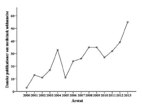 Danske førsteforfattere på alle uddannelsesartiklerne blev ligeledes gennemgået for at identificere yderligere artikler, hvorefter der blev afholdt et konsensusmøde. Søgningen afslørede en stor stigning i antallet af dansk publicerede artikler omhandlende medicinsk uddannelse (se figuren).