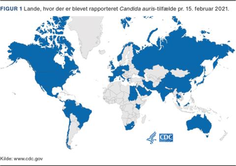 Candida auris er en nyere Candida-art, som blev isoleret første gang i 2009 fra øregangen hos en japansk patient. Siden er denne gærsvamp påvist på alle kontinenter og er nu vidt udbredt i Indien, Pakistan og Sydafrika (Figur 1).