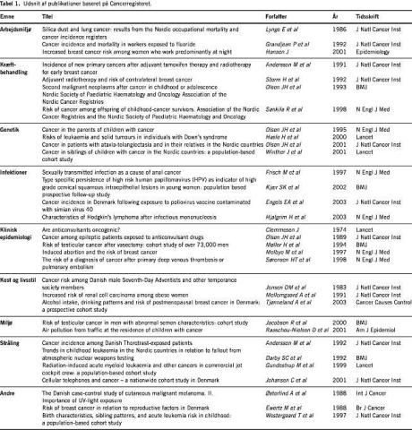 Jørgen Helge Olsen, Institut for Epidemiologisk Kræftforskning, Kræftens Bekæmpelse, Strandboulevarden 49, DK-2100 København Ø. E-mail: jorgen@cancer.dk