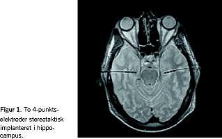 Hos en 38-årig mand med temporallapsanfald var sidelokalisationen usikker, men med stereotaktisk placerede elektroder i begge hippocampi blev der registreret velkendte anfald med tydeligt EEG-korrelat fra højre hippocampus (Figur 1 ). Som et kuriosum registreredes også epilepsisuspekt EEG-aktivitet fra dette område, men uden klinisk udtryk. Efter en selektiv hippocampektomi blev patienten anfaldsfri og uden subjektive kognitive forstyrrelser.