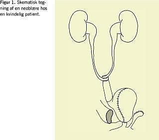 Et stigende antal kvinder i Danmark bliver kandidater til cystektomi, fordi cystektomi i højere grad foretrækkes som behandling af blærecancer, hvor lymfeknudemetastaser ikke er påvist [1]. Cystektomi medfører behov for urinafledning enten i form af våd stomi, tør stomi eller neoblære. Princippet ved en ortotopisk neoblære er at erstatte blæren med et reservoir dannet af et tyndtarmssegment, som placeres på blærens tidligere lokalisation (Figur 1 ). Ureteres bliver sutureret proksimalt på reservoiret og urethra distalt, så vandladning efterfølgende kan ske per urethram. Der findes flere typer ortotopiske neoblærer tildannet af tyndtarm, men forskellene ligger primært i, hvorledes den detubulerede tarm foldes til et reservoir, og hvorledes ureteranastomosen udføres. Neoblære kan tilbydes, såfremt der ikke er tumorindvækst i blærehalsen eller urethra, præoperativ stressinkontinens eller nedsat nyrefunktion [2]. I 1999 startede samarbejdet mellem Rigshospitalet (RH) og Århus Universitetshospital, Skejby (SKS) omkring neoblærer hos kvinder, fordi man indtil da kun havde erfaringer med neoblærer hos mandlige cystektomipatienter.