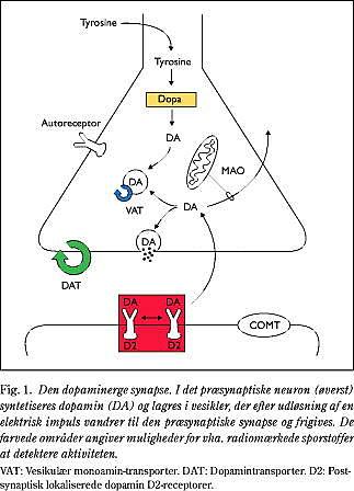 De sporstoffer, der anvendes ved parkinsonistiske sygdomsbilleder, omfatter principielt fire grupper: mærkede dopaminforstadier, vesikulære monoamintransportere, dopamintransporterblokkere og dopaminreceptorantagonister (Fig. 1).