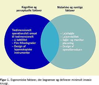 Summary Physical and mental strain on the surgeon during minimally invasive surgery Ugeskr Læger 2008;170(8):624-629 Minimally invasive surgery (MIS) is in theory more physically and mentally demanding than open surgery. This aspect is due to the inherent limits of MIS. The implementation of high-technological operating rooms and the development of ergonomically more useful instruments have not been documented scientifically, nor has the question of whether or not MIS is a contributing problem in itself in the surgeon's work been documented. There is a need for clinical investigations with establishment of methodological models of the ergonomics in MIS.