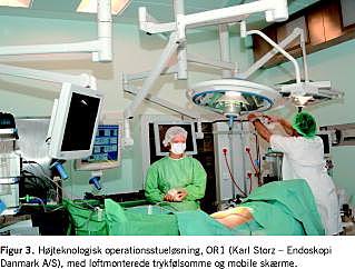 På flere hospitaler i Danmark har man bygget højteknologiske operationsstuer, der honorerer standardergonomiske krav, og hvor der økonomiseres med alt fra kirurgens bevægelser til operationsstuedesign for at øge patientsikkerheden, optimere udskiftningstiden og reducere kirurgens belastning vha. avanceret operationsudstyr og kommunikationsmuligheder via moderne soft- og hardware.