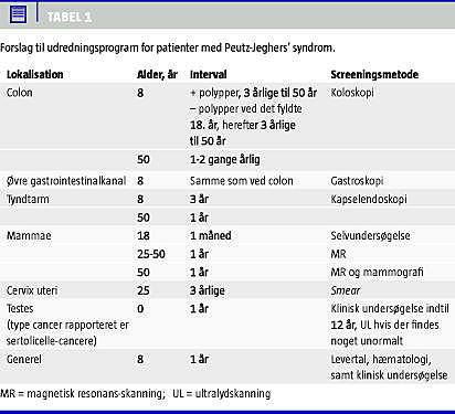 I Tabel 1 videregives i en omskrevet form deres forslag til kontrol/udredningsprogram [1].