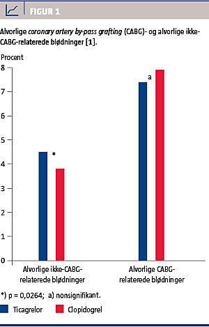 For ticagrelor tilrådes forsigtighed hos patienter med bradykardi, alder > 75 år, nedsat nyrefunktion og KOL/astma. I PLATO-studiet havde ticagrelor signifikant bedre effekt end clopidogrel [2] og bevirkede ikke flere større blødninger. Der sås dog flere alvorlige ikke-coronary artery by-pass grafting-relaterede blødninger ved behandling med ticagrelor end ved behandling med clopidogrel (Figur 1), og 31,5% af disse var lokaliseret i GI-kanalen [3].
