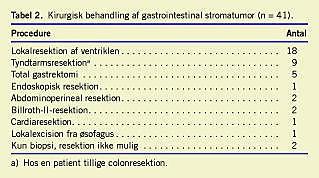 Kirurgisk resektion er den primære behandling af GIST, og dette var muligt at foretage hos 95% af patienterne.