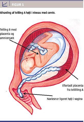 Der er beskrevet ca. 400 tilfælde af dikoriske gemelligraviditeter, hvor man efter præmatur fødsel af tvilling A har forsøgt at forsinke forløsningen af tvilling B [3, 4]. Forebyggelse og behandling har varieret og bl.a. bestået af sengeleje, tokolyse, antibiotika, steroider til lungemodning og cerklage. Tidsintervallet mellem fødslen af tvilling A og B har været 1-153 dage [3, 4]. Der er enighed om, at muligheden kun bør overvejes ved dikoriske gemelligraviditeter, og der må ikke være kliniske tegn på abruptio placentae, føtalt distress, chorioamnionitis eller alvorlig præ-eklampsi. I et review fra 2009 [4] har man ud fra gennemgang af 145 cases forsøgt at give et forslag til håndtering af graviditeten. Der anbefales afnavling af tvilling A højt i niveau med cervix (Figur 1), behandling med bredspektret i.v.-antibiotika ved tegn på infektion, og påbegyndelse af profylaktisk tokolyse umiddelbart efter forløsning af tvilling A. Anlæggelse af cerklage kan muligvis øge risikoen for vandafgang og chorioamnionitis, men er også beskrevet at kunne forlænge graviditeten [5].