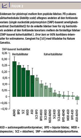 Heritabiliteten af de psykiske lidelser er blandt de højeste inden for komplekse sygdomme med estimater fra tvillingestudier på 70-80% for f.eks. skizofreni, bipolar sindslidelse, autisme og ADHD og 35-40% for