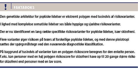 Den omfattende pleiotropi rokker ved begrundelsen for de nuværende diagnostiske enheder, og det vil på sigt føre til en omfattende ændring af vores diagnostiske klassifikation baseret på en ætiologisk forståelse og med et overlappende kontinuum af kliniske symptomer.