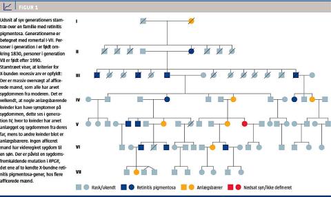 Arvelige øjensygdomme kan arves autosomalt dominant, autosomalt recessivt, X-bundet dominant og recessivt samt mitokondrielt. For samme kliniske øjendiagnose er flere arvegange ofte mulige, og det er derfor vigtigt at optegne et stamtræ for familien, hvor typisk tre generationer med alle raske og syge slægtninge bør være noteret (Figur 1).