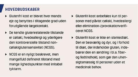 Tidligere var glutenfri diæt (GFD) forbeholdt personer, som havde cøliaki (CD) eller hvedeallergi (HA), men på globalt plan er antallet af mennesker, der er på GFD eller glutenreduceret kost, stærkt stigende. I USA viser undersøgelser, at 25% hvert år køber glutenfri specialvarer og 0,5-3,7% er på fuld GFD uden at have CD eller HA [1-3]. Salget af glutenfri specialvarer steg 136% fra 2013 til 2015 og vurderes til at udgøre 11,6 mia. USD [2].