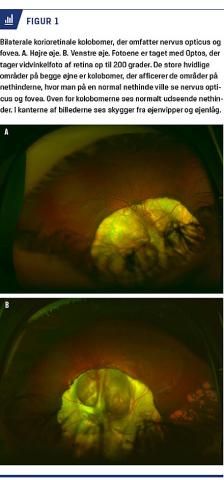 En syvårig dreng (født i uge 35 + 1) blev på Øjenafdelingen på Odense Universitetshospital behandlet for mikroftalmus, iriskolobomer og korioretinalkolobomer, der involverede nervus opticus. Umiddelbart efter fødslen konstateredes små øjne med en corneadiameter på 6-7 mm, iriskolobomer og store korioretinale kolobomer, der bilateralt afficerede både fovea og nervus opticus (Figur 1). Han var i øvrigt rask uden misdannelser.