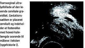 Cervikal ektopisk graviditet udgør mindre end 1% af de ektopiske graviditeter. Antallet er stigende i takt med flere behandlinger med in vitro-fertilisation (IVF) [1]. Førhen behandlede man cervikal ektopisk graviditet med hysterektomi, men nu har behandling med injektion af methotrexat både intramuskulært og intraamniotisk vundet indpas [2-3], hvilket giver mulighed for bevarelse af fertiliteten.