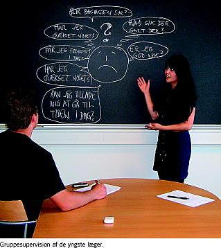 Konklusion: Gruppesupervision kan med fordel bruges til at udvikle nogle af de kompetencer, der kræves af den moderne læge. Ved at arbejde med personlig refleksion i grupper, erkendte lægerne, at de er fælles om mange af de tvivl og tanker, som måtte føles tunge, og de lærer at bruge hinanden i højere grad. Det kræver planlægning og motivation hos den enkelte at opnå et højt fremmøde.
