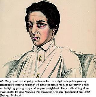 Bang undlod helt bevidst at angive sygdommens årsag i den populære sundhedsbog, hvori han fortalte sygehistorien. Lægen og forældrene balancerede på en knivsæg, når de fik mistanke om, at deres skrantende barn var en såkaldt Onanist. Oftest forelå der ingen bekendelser, hvorfor lægen var nødsaget til at bese og lugte til undertøj og lagner og evt. mikroskopere urinen. Var mistanken ubegrundet, risikerede drengen nemlig at blive ledt i fordærv med »Oplysninger«, som fik ham til at dyrke »det befrygtede Onde«. Bang tilføjede, at det trykte ord kunne få forfærdelige følger også for den mangeårige misbruger, som ved læsning af »Bøger« fik vidnesbyrd om sin kommende skæbne og faldt i en »Melancholie«, der vanskeligt kunne bekæmpes og kunne lede til »Selvmord« [2].