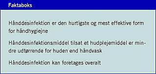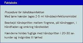 Håndhygiejne er en vigtig faktor til at forebygge, at mikro-organismer overføres fra sundhedspersonalets hænder til patienter/klienter og omgivelser. Håndhygiejne består af enkle procedurer, der er en væsentlig del af den samlede infektionsprofylakse. I talrige observationsstudier er det påvist, at sundhedspersoners efterlevelse af retningslinjer for håndhygiejne er mindre end 50% [1, 2]. Håndhygiejne er valgt som indsatsområde (standard) i Den Danske Kvalitetsmodel, og WHO har med Global Patient Safety Challenge 2005-2006 satset på at fremme håndhygiejne globalt, bl.a. ved udarbejdelse af evidensbaserede retningslinjer herfor [1].