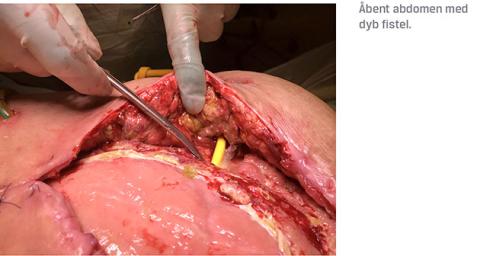 Åbent abdomen med fistel er en sjælden, svær komplikation i forbindelse med abdominalkirurgi og har høj morbiditet og mortalitet. Perioperativ behandling med tidlig ernæring, væske- og infektionskontrol er vigtig for at sikre en god prognose.