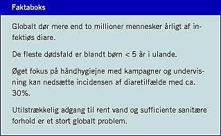 Der er derfor meget at vinde ved en målrettet indsats mod infektiøse diaretilstande. Cochraneanalysen kommer på et yderst relevant tidspunkt, idet 2008 var udnævnt af FN til »Det Internationale År for Sanitet« og specielt 20. marts til »Verdens vanddag« med fokus på tilstrækkelig adgang til rent vand, toiletter/latriner [1] og andre sanitære forhold.