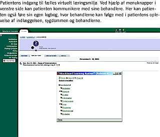 Det fremtidige sundhedsvæsen deler allerede i dag en udvikling med de studerende og samfundet, nemlig tænkningen om, at behandling af patienter i stigende grad skal tage udgangspunkt i den enkelte patients behov, holdninger og miljø. Aktiviteterne i relation til patienterne vil i tiltagende grad foregå uafhængig af tid og rum og på patienternes præmisser. VLM tager udgangspunkt i den enkelte elev/studerendes tilegnelse af viden på hans eller hendes egne præmisser og med aktiv deltagen. Det er analogt til den udvikling, der ses for patientens rolle, nemlig en aktiv deltager i behandlingen, hvor lægens rolle ligesom underviserens er ved at skifte fra den autoritære meddelende til den mere faciliterende, formidlende og samarbejdende, hvorved patienten ikke kun bliver kureret men også »lægt«. Det er derfor en naturlig udvikling, at sundhedsvæsenet som supplement til den information, som vi i dag giver ved kontakten med patienter, også giver dem mulighed for at fordybe sig i deres sygdom, ikke blot ud fra afdelingsinformation, materiale fra patientforeninger og internetresurser, men i et VLM. Her vil informationerne fortsat kunne findes, men i en sammenhæng med blandt andet diskussionsforum, multimediepræsentationer, reportager om tidligere patienter og opgaver. VLM vil give patienterne mulighed for at være aktive deltagere i deres udredning, behandling og opfølgning både hjemmefra, men også via laptop eller en personlig digital assistent (PDA), som de kan koble op til sygehusets trådløse net, der jo i forvejen er etableret af hensyn til de elektroniske patientjournaler (EPJ) og lægernes PDA'er og tablets . Tilsvarende kan det ikke ligge langt ude i fremtiden, at sengebordene på alle afdelinger bliver udstyret med berøringsfølsomme skærme med tv og internetfunktionalitet. Det har vi jo allerede i dag på økonomiklassen på fly. Hvornår bestiller patienterne mon mad og medicin samt beskriver de problemer, de ønsker taget op til stuegang, i deres egen logbog/portefolio? De vil også kunne beskrive de gode og dårlige oplevelser gennem det seneste døgn, hvor noget deles med behandlende læge/sygeplejerske i et patientbehandlingsmiljø, der kombinerer EPJ, informationer og dialoger - derved vil VLM's funktionalitet blive anvendt til en fælles kontinuert læringsproces, hvor patienter og sundhedspersonale er daglige aktører i en livslang læringsproces?