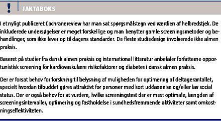 af f.eks. livsstilsændringer [9]. Det konkluderes, at helbredstjek i almen praksis er associeret med små, men statistisk signifikante forbedringer i surrogatendemål.