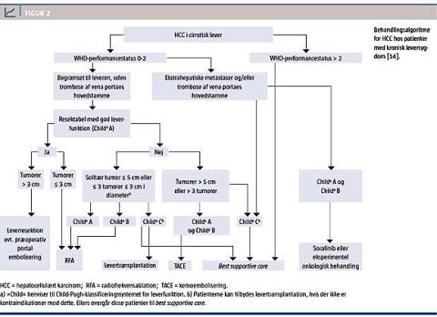 HCC er en primær levercancer, og der forekommer ca. 250 tilfælde om året i Danmark [14]. Sygdommen har en prognose med få procents femårsoverlevelse, hvis ikke den konstateres på et tidligt stadium [3], og den er derfor en relativt hyppig dødsårsag blandt patienter med KHC-relateret cirrose [12].