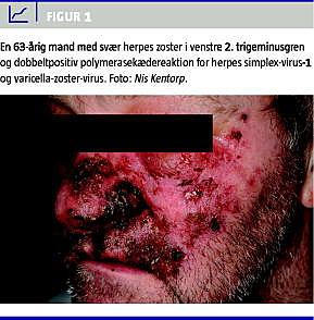 I denne kasuistik præsenteres et tilfælde af herpes zoster i 2. venstre trigeminusgren, hvor der blev påvist koinfektion med HSV-1.