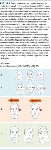 Rationalet bag head impulse test (HIT) er en undersøgelse af vestibulookulærrefleksen (VOR). Hvis HIT ikke frembringer catch-up-sakkader, er testen negativ. En negativ HIT ved AVS tyder på en central årsag, mens en positiv HIT tyder på en perifer årsag (Figur 1).