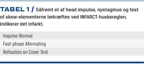 Ved AVS har head impulse, nystagmus og test of skew (HINTS)-kriterierne højere sensitivitet for iskæmisk apopleksi end MR-skanning.