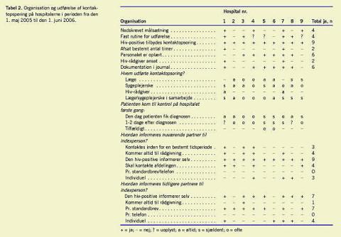 Konklusion: Kontaktopsporing blev udført hos under halvdelen af de nydiagnosticerede hiv-positive. Hver fjerde opsporede partner var hiv-positiv uden at vide det. Kontaktopsporing udføres meget forskelligt på de danske hospitaler. Der er behov for en intensiveret og ensartet kontaktopsporingsindsats.