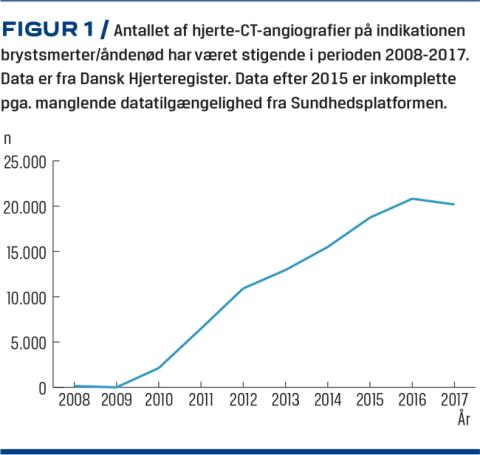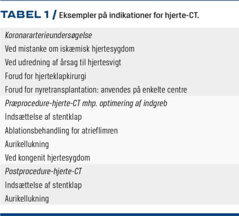 Hjerte-CT er gennem det seneste årti blevet etableret i Danmark som den hyppigst anvendte undersøgelse til udredning af stabil angina pectoris og identifikation af patienter, som bør undersøges invasivt mhp. koronar revaskularisering, bl.a. fordi hjerte-CT er noninvasiv og har høj sensitivitet og høj negativ prædiktiv værdi. I både danske og internationale guidelines anbefales hjerte-CT som førstevalg til udredning af hovedparten af patienter, som har stabil angina pectoris og ikke har kendt IHS. Da man med hjerte-CT kan visualisere hele hjertets anatomi, er indikationerne de senere år blevet udvidet til at inkludere bl.a. medfødt hjertesygdom og klapsygdom. Hjerte-CT anvendes også tiltagende hyppigt før og efter invasive kardielle procedurer. Forbedret billedkvalitet, reduceret stråledosis og et højt antal veludførte videnskabelige studier har banet vejen for denne udvikling og etableringen af hjerte-CT i Danmark.