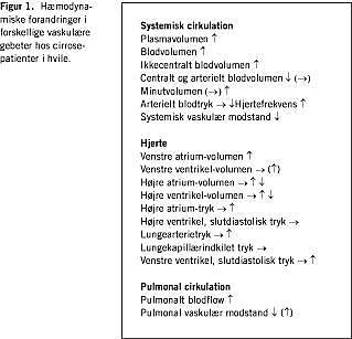 Blandt de faktorer, som bidrager til et hyperdynamisk kredsløb, er arteriolær vasodilatation, øget sympatikusaktivitet, øget cirkulerende blodvolumen og tilstedeværelse af arteriovenøse kommunikanter [3]. Endvidere har mange leverpatienter begrænset fysisk kapacitet, dyspnø og væskeretention [4].