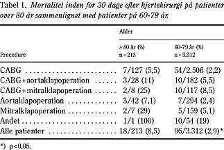 På denne baggrund har vi fundet det af interesse at beskrive resultaterne efter hjertekirurgi på patienter over 79 år.
