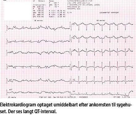 Hypokaliæmi er selvstændigt associeret med forlænget QT-interval og maligne arytmier [3]. Patienten i sygehistorien havde et S-kaliumniveau på 3,3 mmol/l, hvilket er lige under den nedre grænseværdi på 3,5 mmol/l.