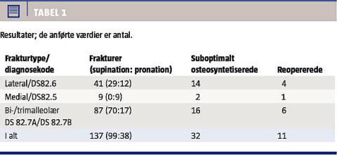 Samlet set fandtes godt 23% af alle 137 osteosynteser at være suboptimale, og reoperationsraten var på 8%.