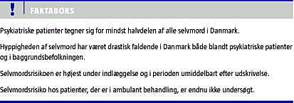 PSYKIATRISKE PATIENTER TEGNER SIG FOR STØRSTEDELEN AF ALLE SELVMORD I DANMARK