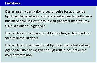 Det har igennem en årrække været standardbehandling at give infusion af høje doser steroider til patienter med neurologiske udfald efter traumatiske læsioner af rygmarven.