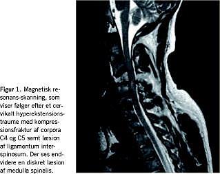Behandlingen har været baseret på anbefalinger i randomiserede, klinisk kontrollerede undersøgelser offentliggjort i 1990 [1] og senest i 1997 [2]. Der har efterfølgende været rejst kritik af disse undersøgelser, ligesom man i senere undersøgelser ikke har kunnet fremkomme med samme optimistiske konklusioner, men derimod har kunnet påvise signifikant forekomst af komplikationer. Der er således grund til at overveje indikationen for fortsat brug af højdosis steroidbehandling til patienter med akutte spinale traumer (Figur 1 ).