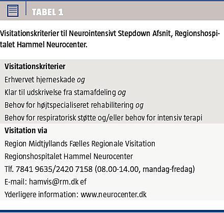 Patienter med erhvervet hjerneskade og behov for højtspecialiseret rehabilitering henvises til Hammel Neurocenter igennem Region Midtjyllands Fælles Regionale Visitation, som herefter visiterer ustabile patienter til NISA (Tabel 1). Patienter, som i primærforløbet kan udskrives fra intensivt regi på stamsyge-