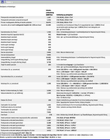 Tabel 2 viser de totale og gennemsnitlige omkostninger for de tre typer operationsforløb. De altoverskyggende udgifter var sengedage på intensiv og stamafdeling. De udgjorde mellem 78% og 81% af udgifterne.