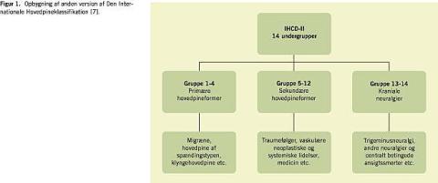 ICHD-II er opbygget af 14 underafsnit, fordelt på tre hovedgrupper (Figur 1) og et appendiks.
