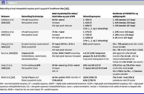 De fleste undersøgelser vedrørende behandling af HGAIN er prospektive, åbne studier (Tabel 1 ), der viser, at HGAIN kan behandles, hvorved risikoen for udvikling af analcancer teoretisk burde kunne reduceres.
