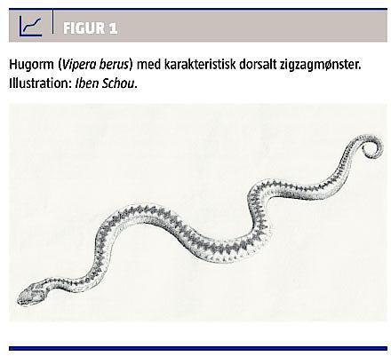 Hvert år indlægges der ca. 70 patienter på sygehusene i Danmark efter hugormebid, og i alt er der rapporteret om syv fatale bid i Danmark siden 1900 [5].