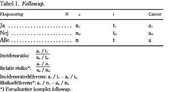 Epidemiologer studerer incidens, prævalens, overlevelse og mortalitet. Forestiller man sig et followupstudie efter følgende enklest mulige model (Tabel 1 ), så ses alle beregninger angivet her.