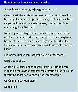 Neurointensiv terapi (NIT) omfatter behandlingen af kritisk syge patienter med hovedsygdom i det neurologiske system og samtidigt behov for intensiv terapi - dvs. akut, livreddende behandling eller overvågning og understøttende behandling af vitale organsystemer [1]. NIT adskiller sig på flere områder væsentligt fra den generelle intensive terapi.