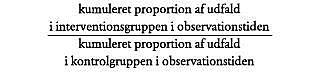 og besvarer spørgsmålet: »Hvor meget større eller mindre er sandsynligheden for et givet udfald i interventionsgruppen i forhold til kontrolgruppen?«